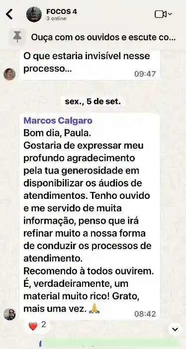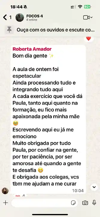 O suporte do aluno relacionado ao conteúdo será feito inteira e diretamente com a Paula Fagundes através do diálogo no grupo de Whatsapp ou durante as aulas ao vivo.
